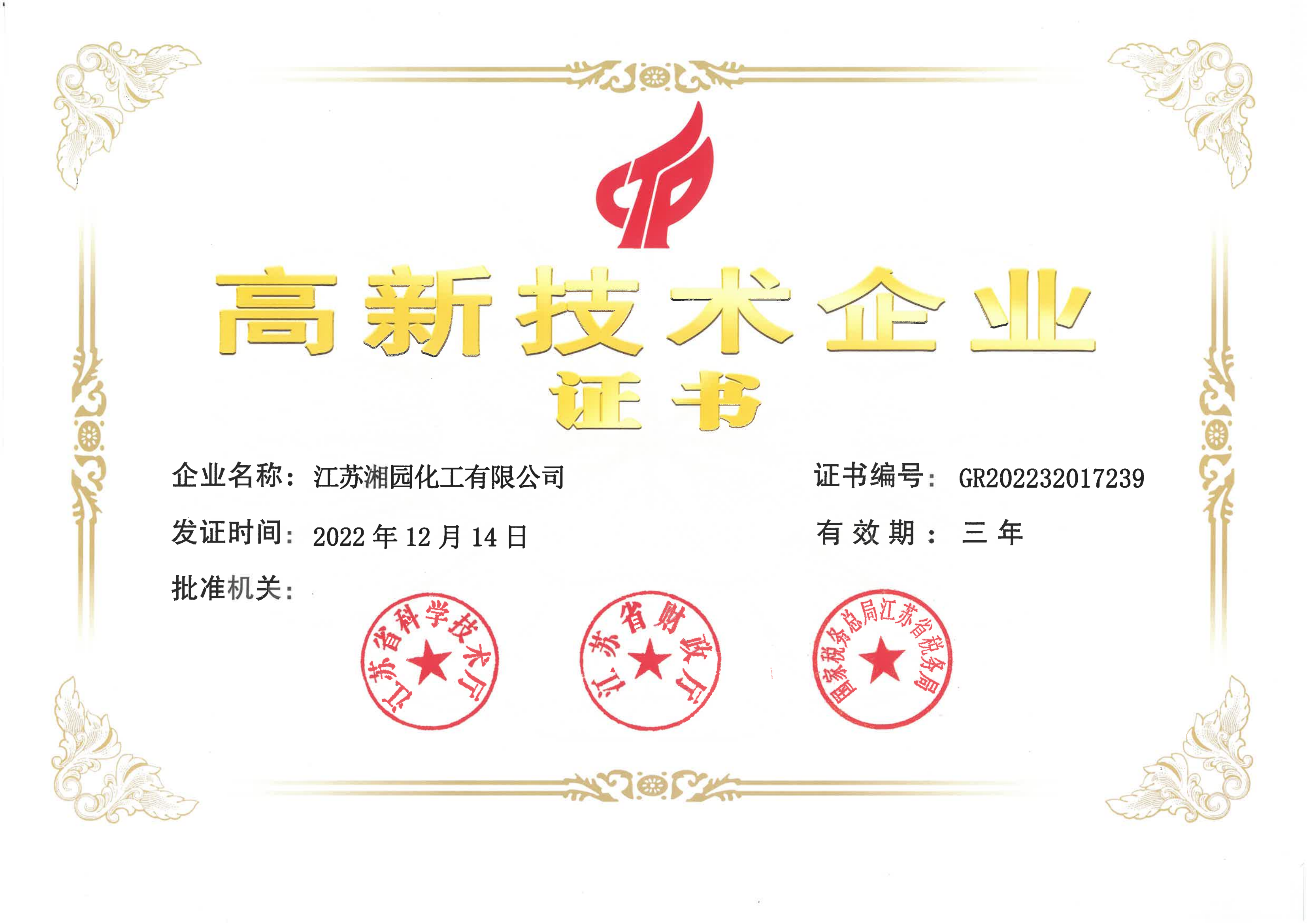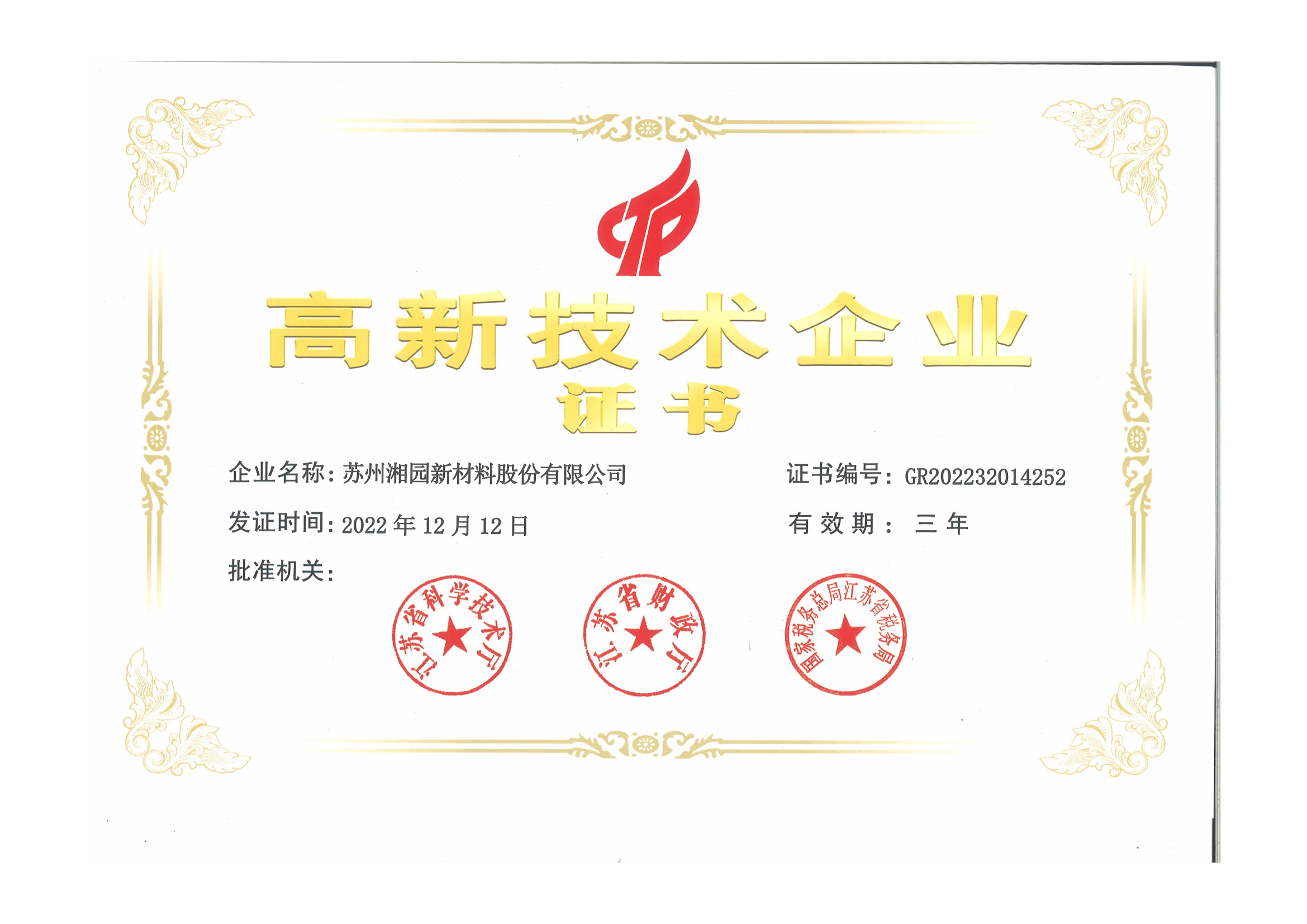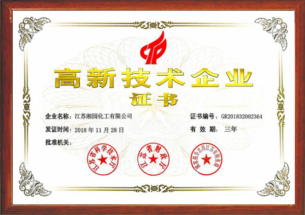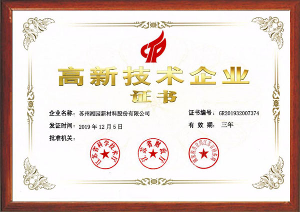 獲評爲江蘇省高新技術企業(江蘇湘園)
