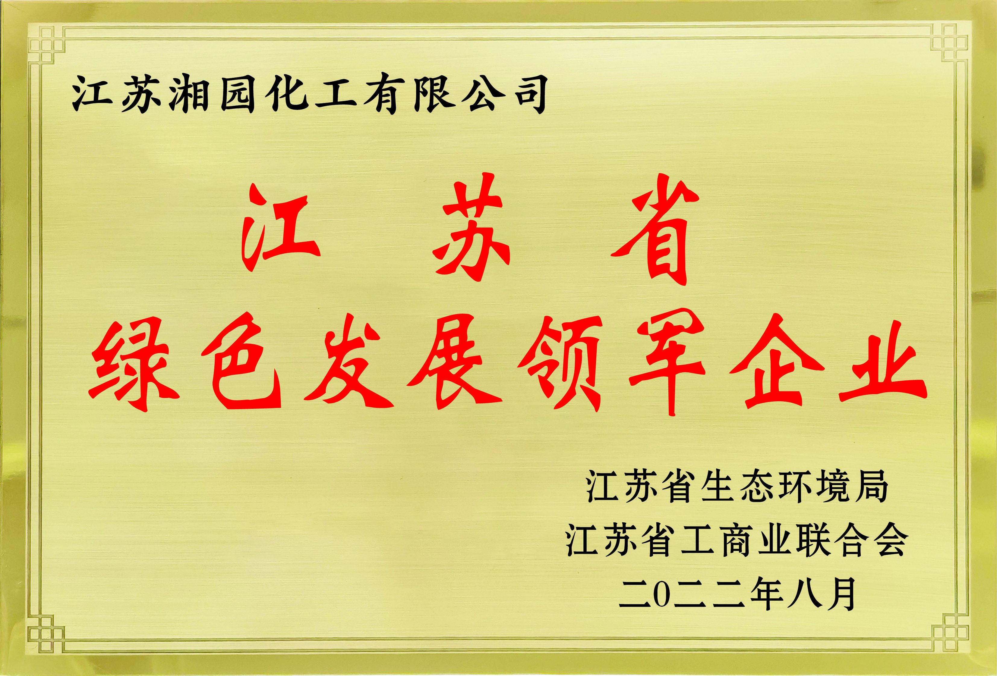 獲評爲江蘇省綠色發展領軍企業