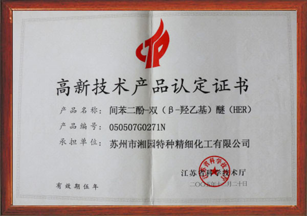 間苯二酚-雙(β-羟乙基)醚(HER)被認定爲江蘇省高新技術産品