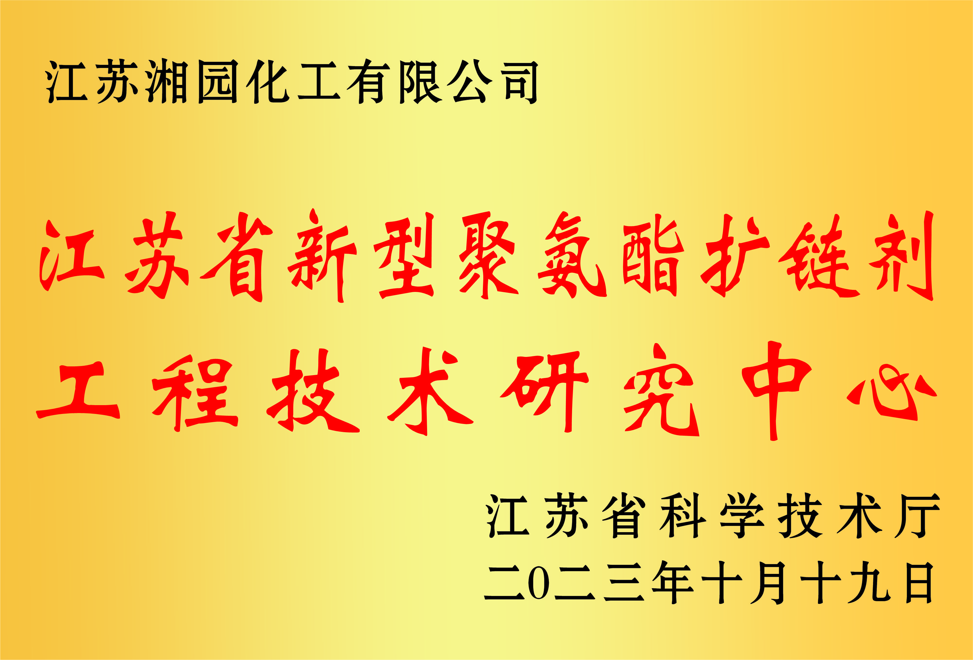 獲評爲江蘇省新型聚氨酯擴鏈劑工程技術研究中心