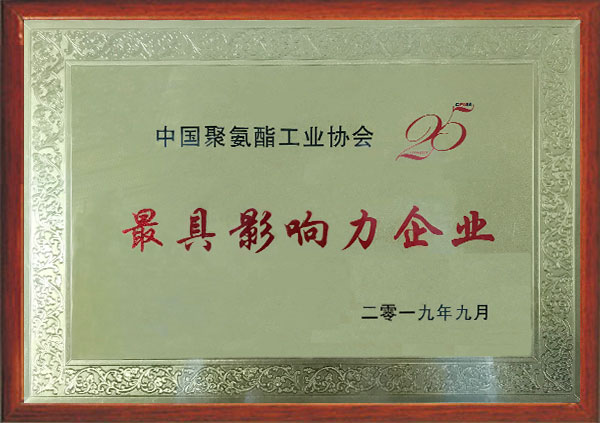獲評中國聚氨酯工業協會最 具影響力企業