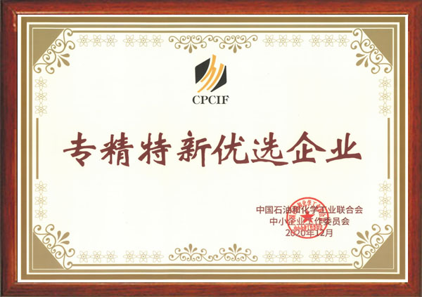 獲評中國石油和化學工業聯合會中小企業工作委員會“專精特新優選企業”