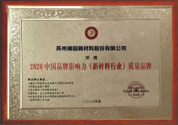 獲評2020中國品牌影響力(新材料行業)質量品牌企業