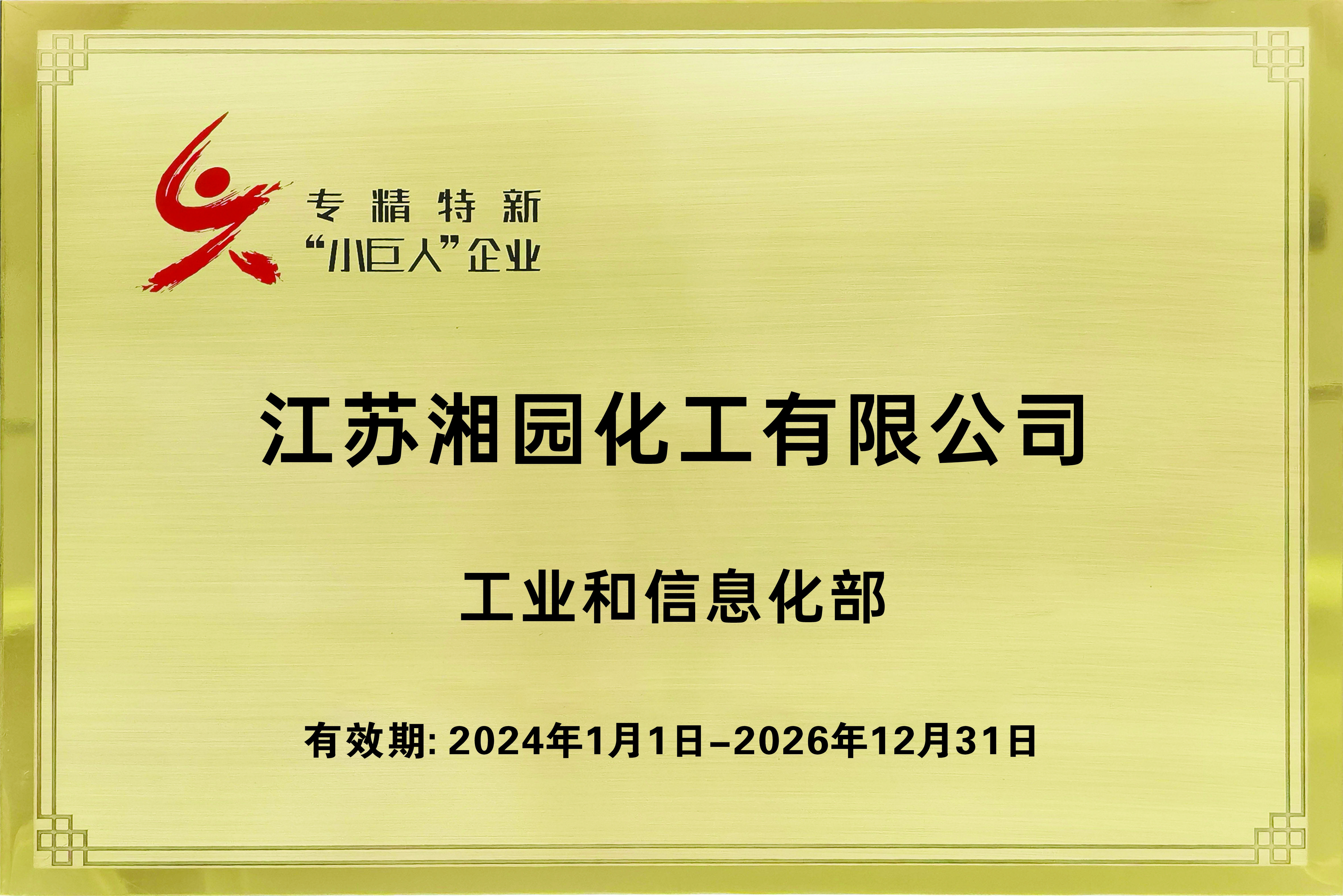 獲評工業和信息化部專精特新“小巨人”企業(江蘇湘園)
