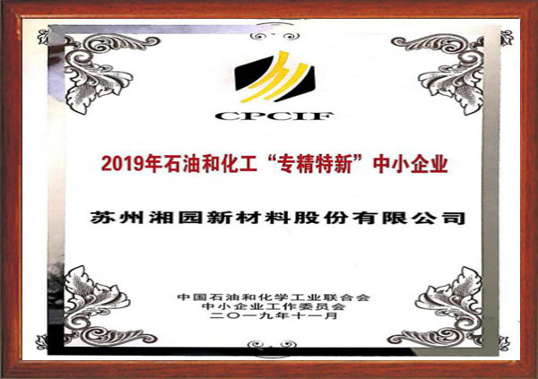 獲評2019年度石油和化工“專精特新”中小企業